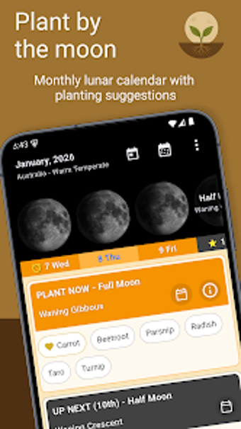 La aplicación también incluye un diario sencillo para registrar siembras y cosechas, lo que permite a los jardineros llevar un seguimiento de sus resultados y mejorar su rendimiento con el tiempo. Con la posibilidad de establecer recordatorios y acceder a sugerencias de plantación específicas por región, Lunar Planting Guide & Planner es una herramienta valiosa tanto para principiantes como para jardineros experimentados.